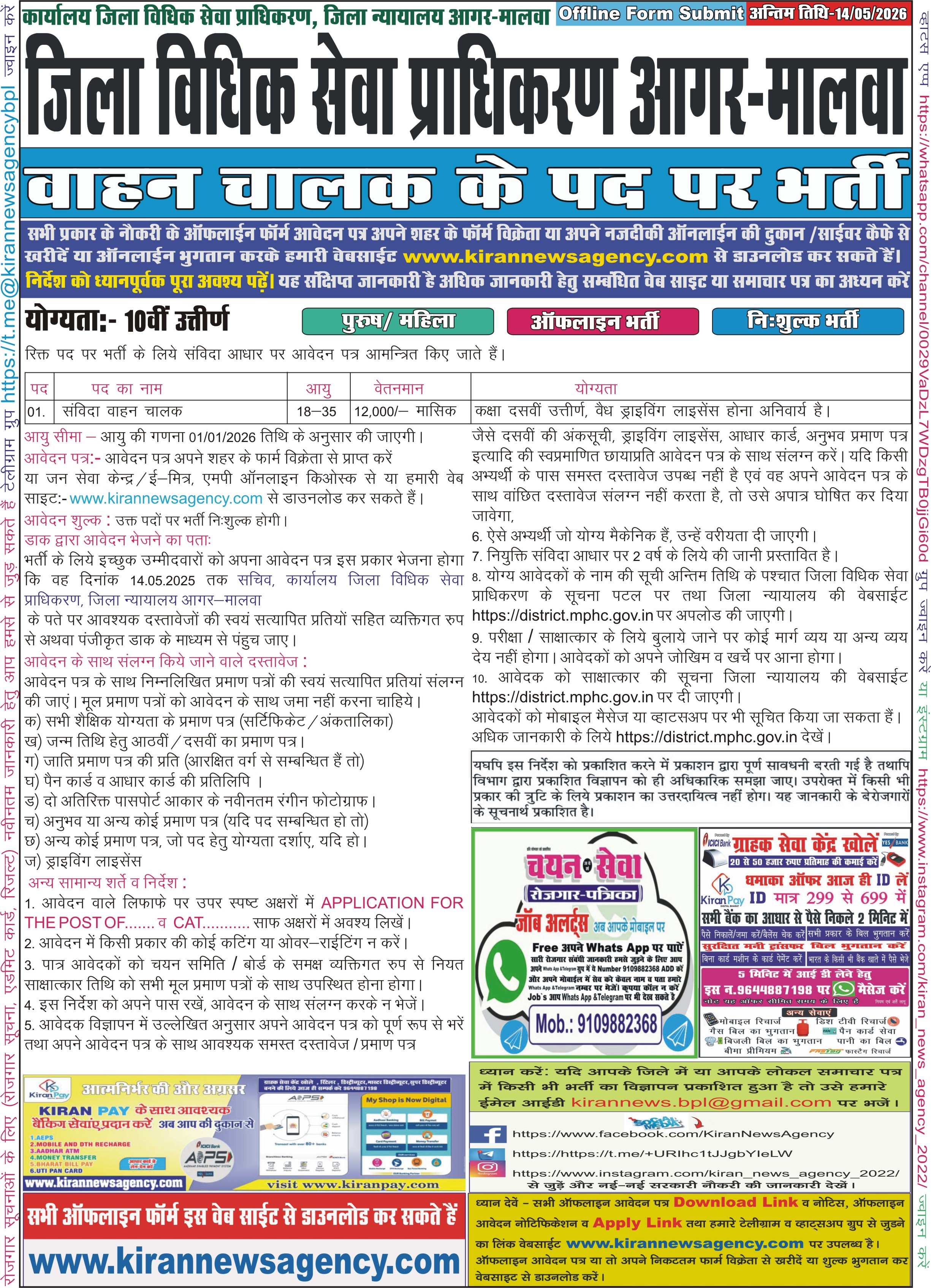 Recruitment :- Driver (Vahan Chalak)