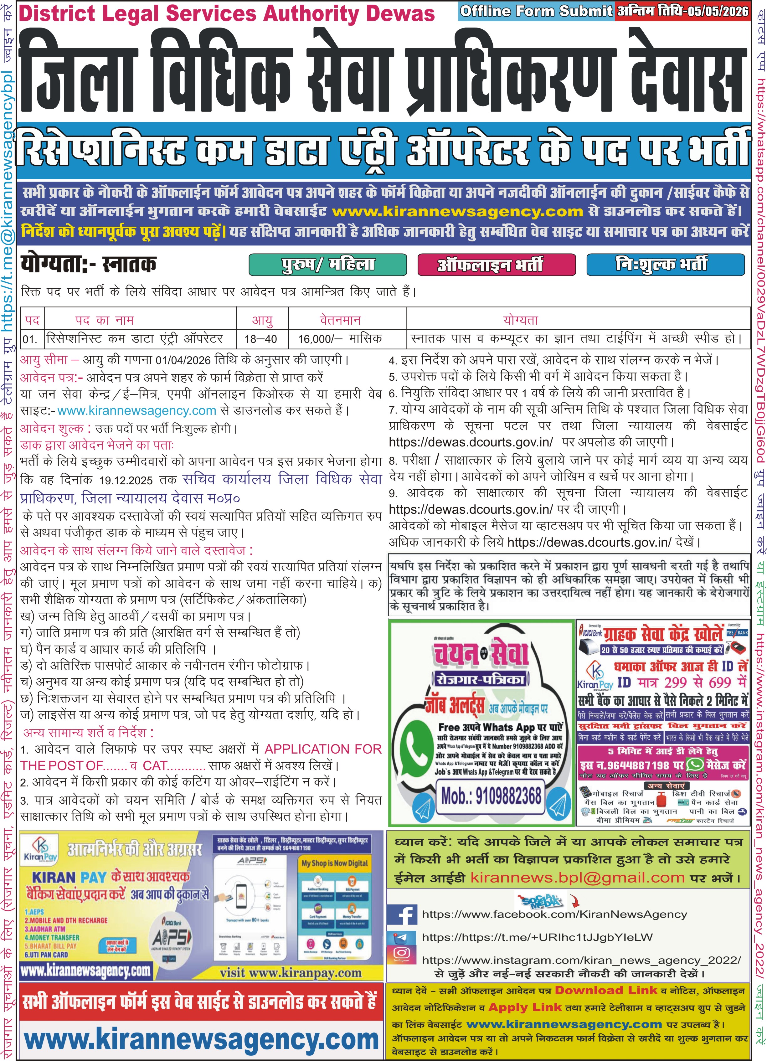 आवेदक को सलाह दी जाती है की सर्वप्रथम आवेदक विज्ञापन में दी हुई समस्त जानकारी को ध्यानपूर्वक पढ़े (यह संक्षिप्त विज्ञापन है)