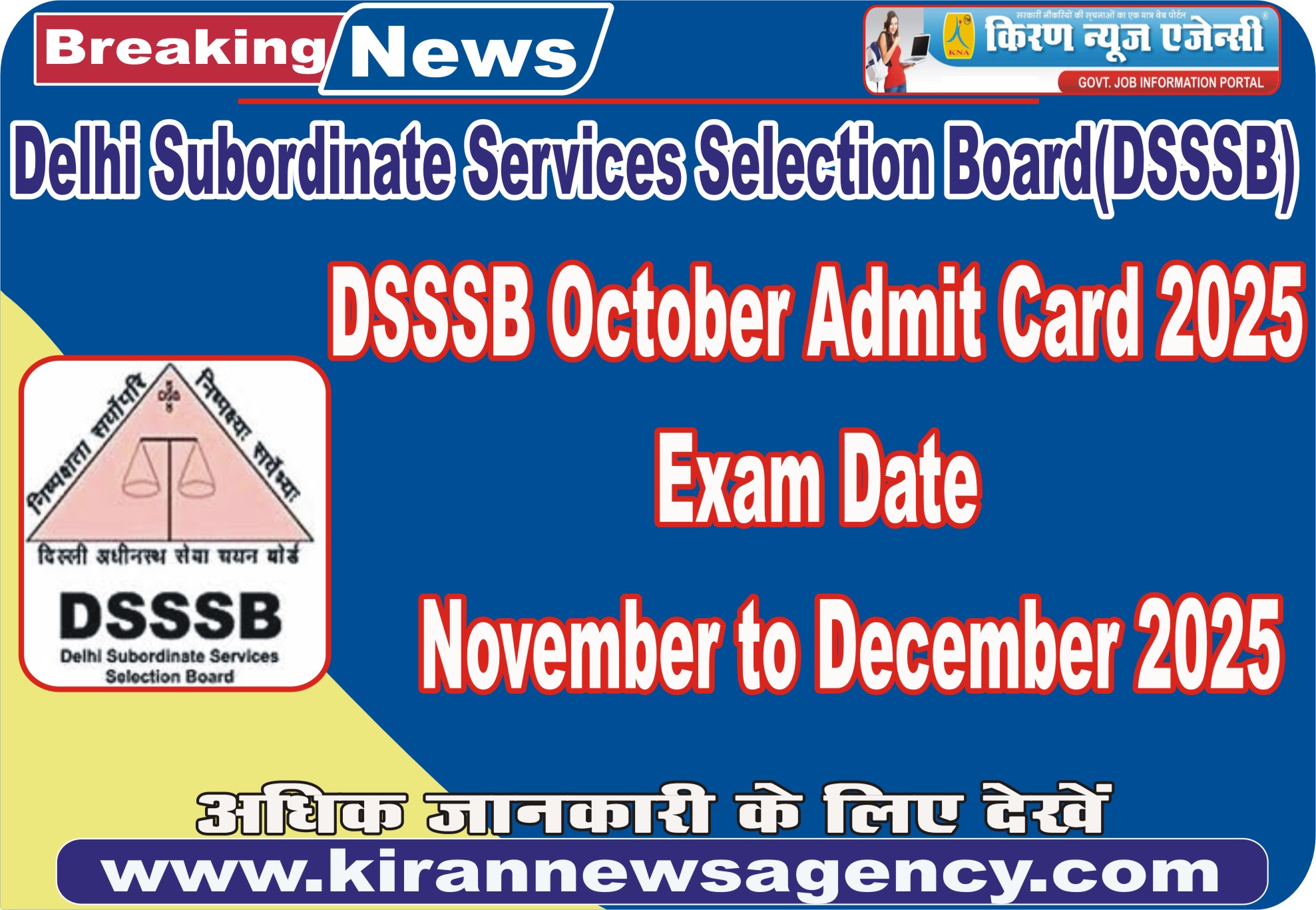 DSSSB October Admit Card 2025 : Exam Date November |