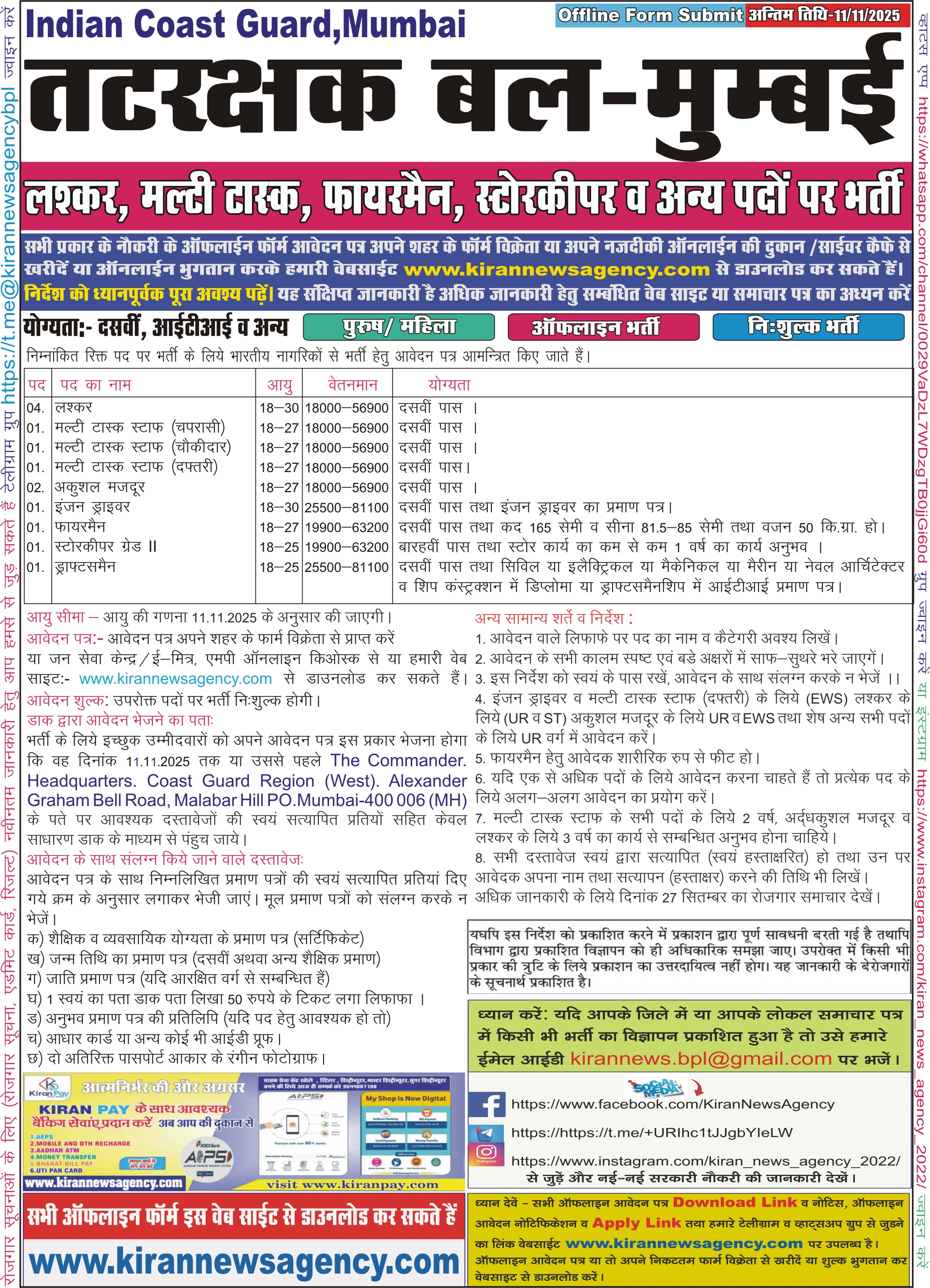 Recruitment :- Fireman, Lascar, Multi Task Staff, Storekeeper, Engine Driver, Labour, Draughtsman