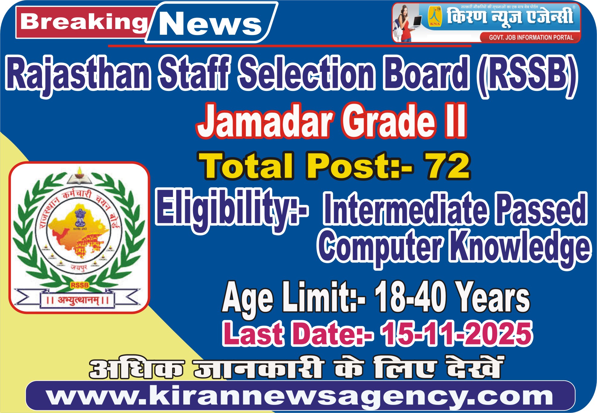RSSB Jamadar Grade II Recruitment 2025 : Vacancy Details Total : 72 Post |