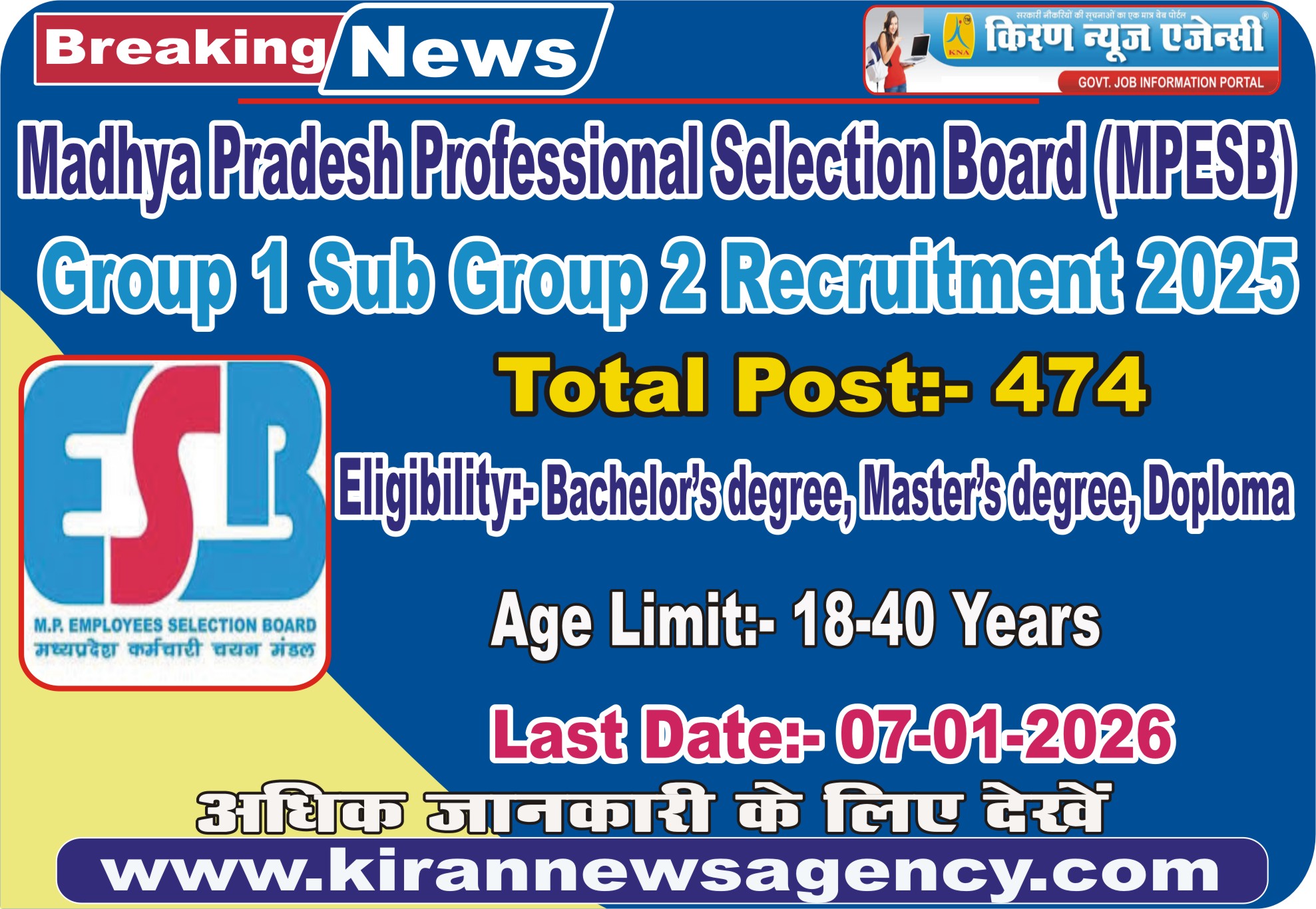 - For all the interested and eligible candidates who want to apply for MPESB Group 1 Sub Group 2 recruitment 2025 can read all the information related to the recruitment is given below and the link to apply is given in the Important Link section below.