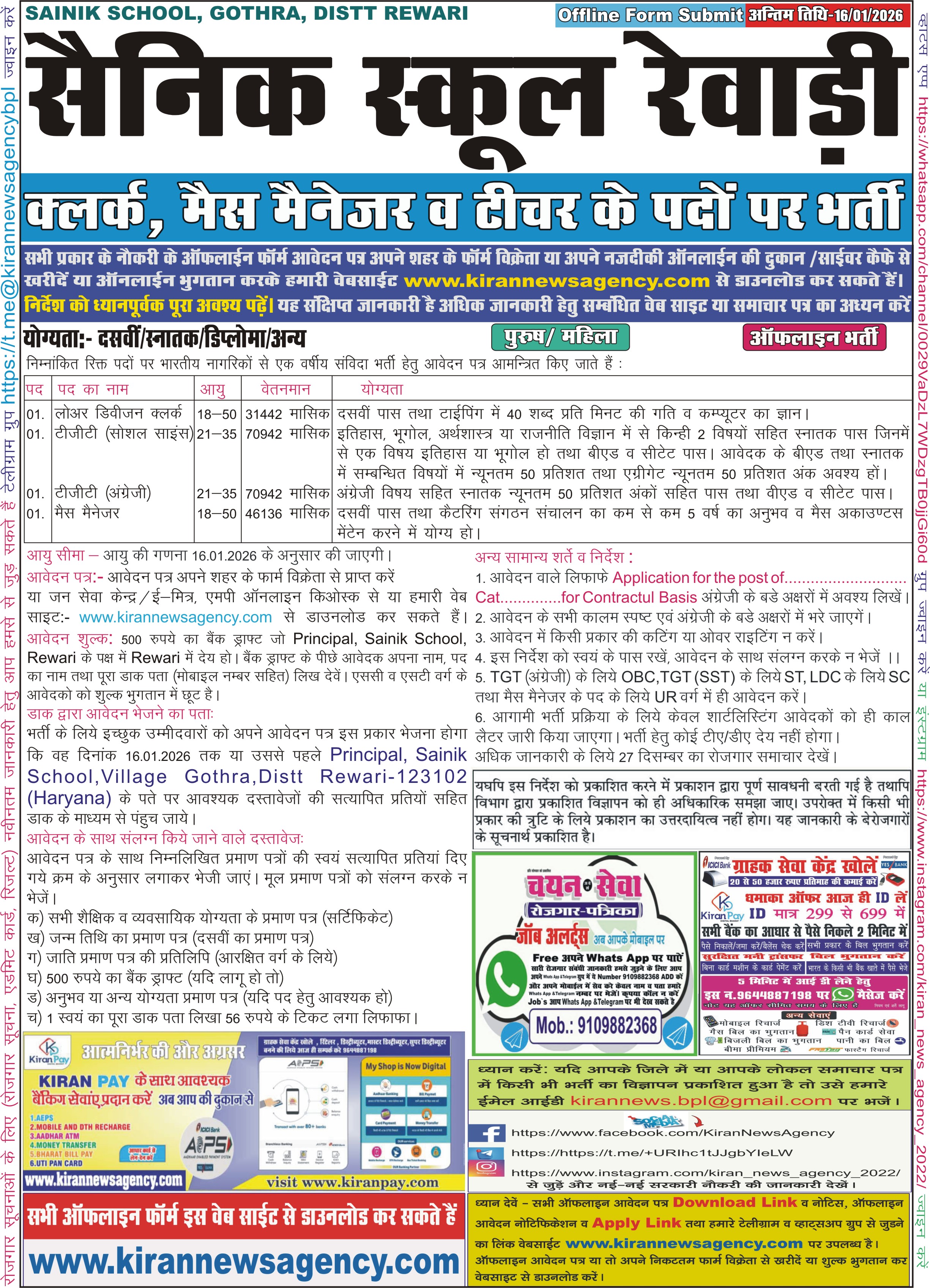 Last Date for Off Online : 16/01/2026