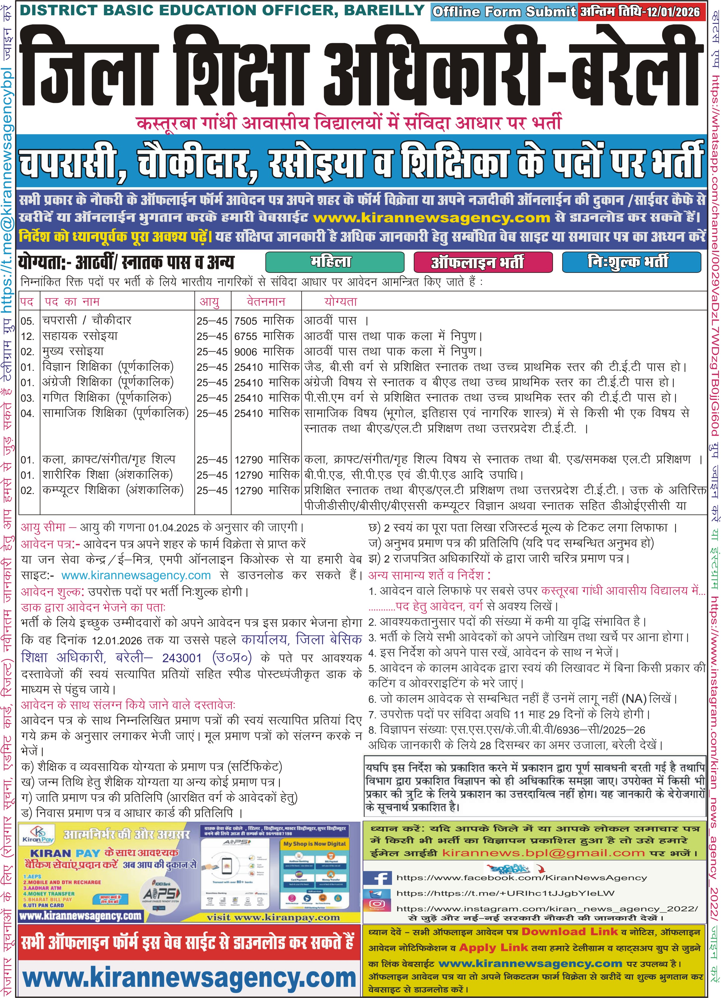 Recruitment :- Peon, Chowkidar, Cook, Teacher