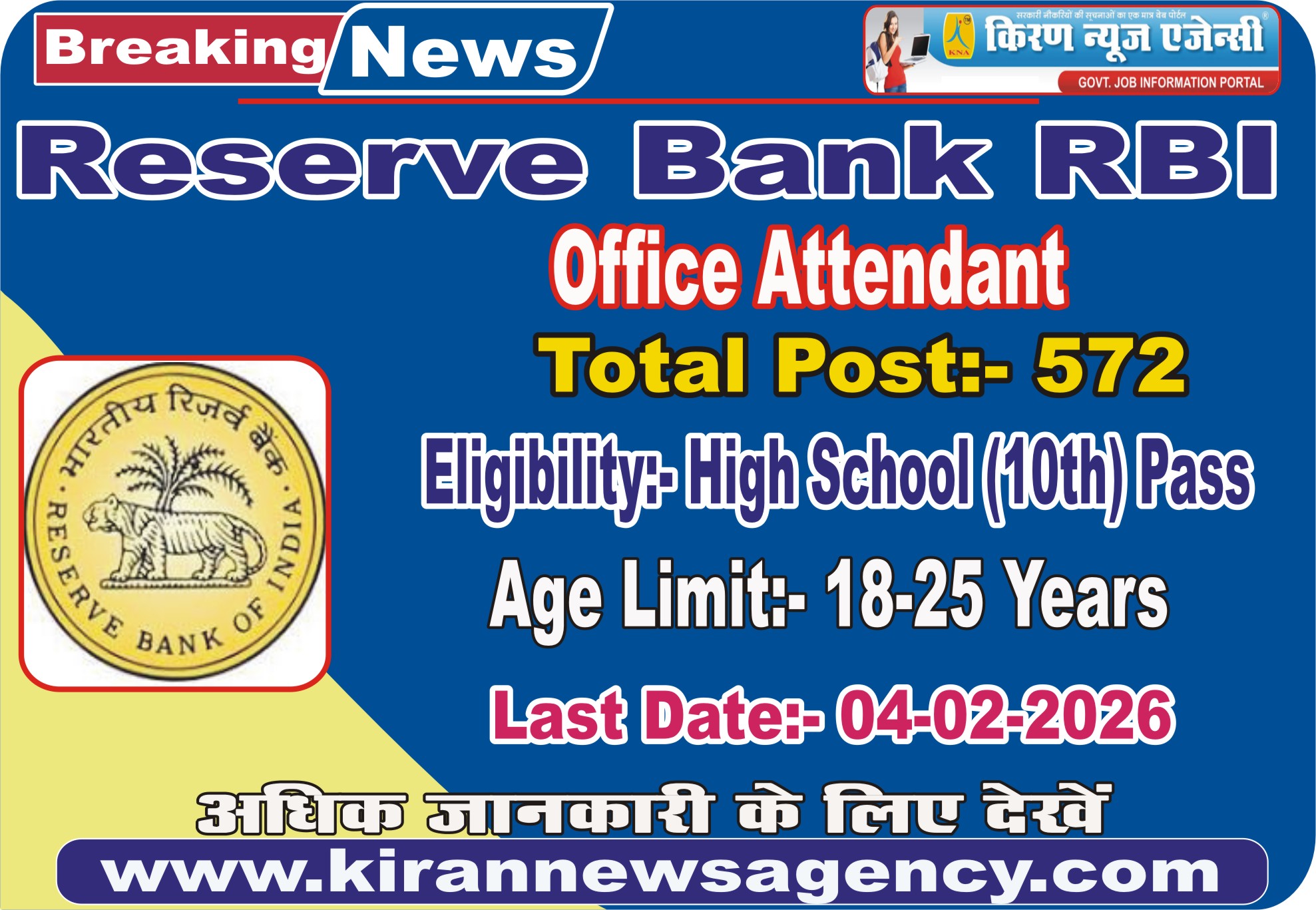 - For all the interested and eligible candidates who want to apply for RBI Office Attended recruitment can read all the information related to the recruitment is given below and the link to apply is given in the Important Link section below.