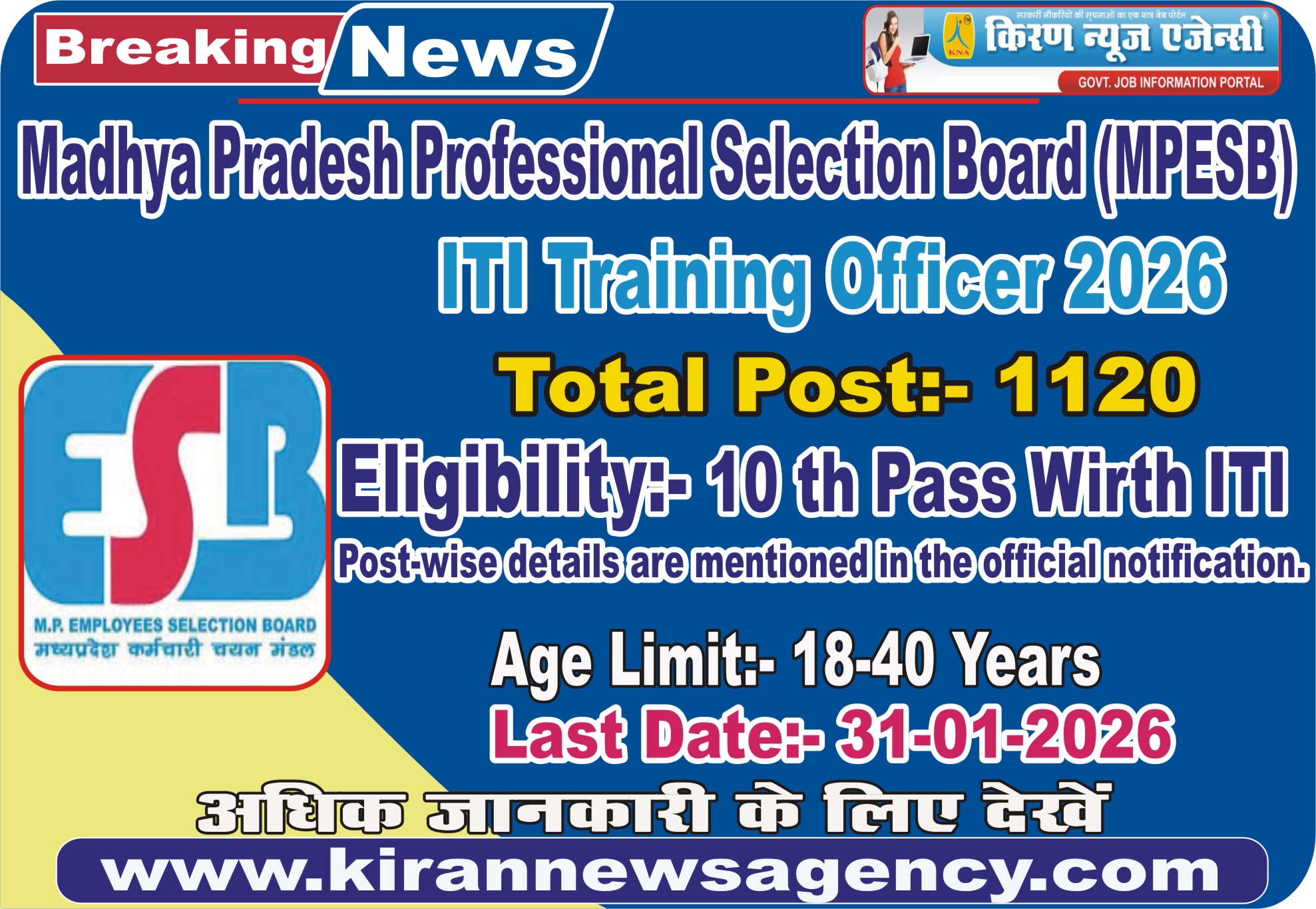 Candidate must have passed Class 10th (High School) from a recognized board. Must possess a valid ITI Certificate in the related trade from a recognized institute. Post-wise eligibility details are mentioned in the official notification. Candidates are strongly advised to read the official notification carefully for trade-wise qualifications.