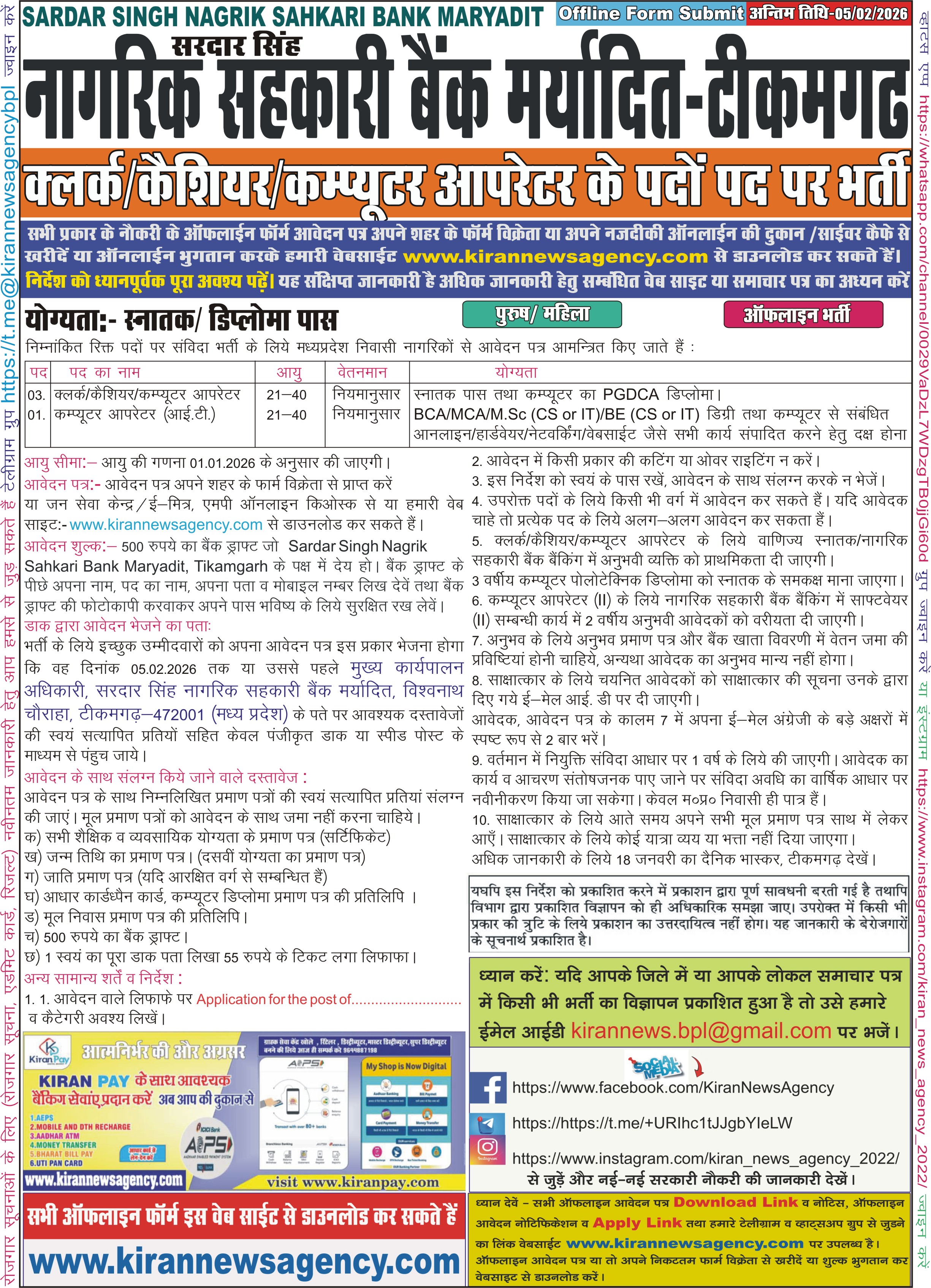 Sardar Singh Nagrik Sahkari Bank Maryadit Tikamga |