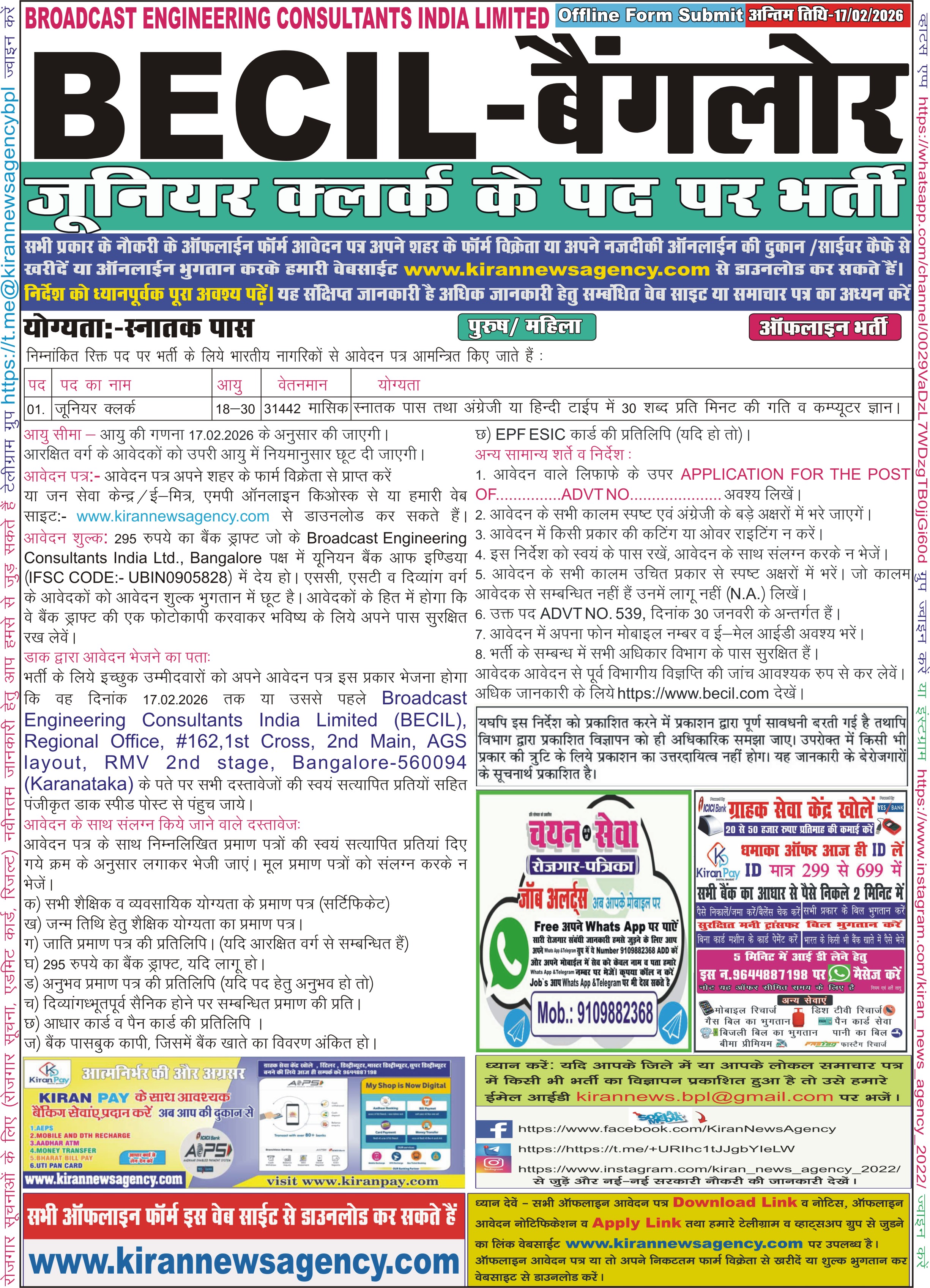आवेदक को सलाह दी जाती है की सर्वप्रथम आवेदक विज्ञापन में दी हुई समस्त जानकारी को ध्यानपूर्वक पढ़े (यह संक्षिप्त विज्ञापन है)