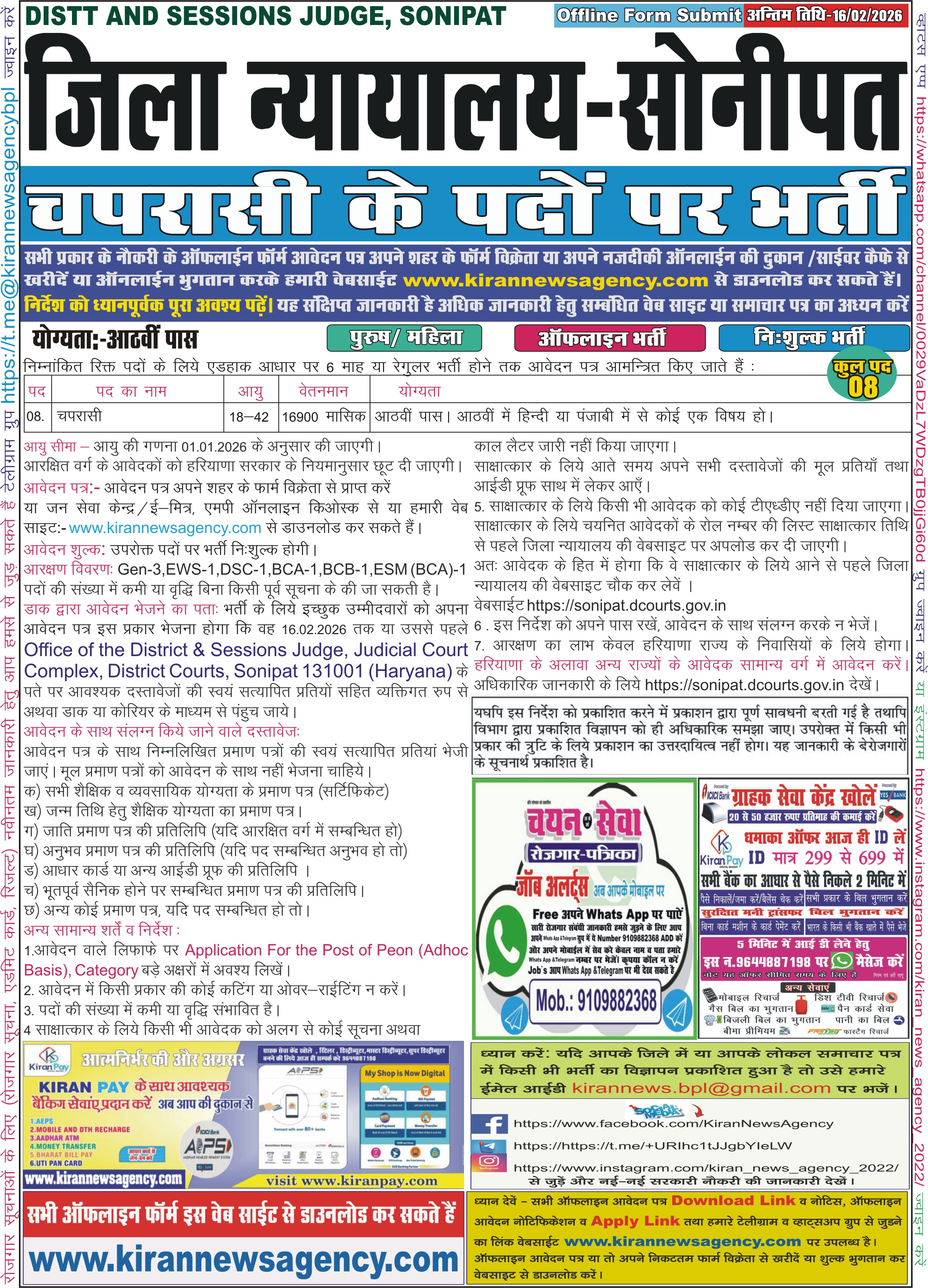District & Sessions Court, Sonipat   |    ECHS Agra   |    ECHS Bikaner   |    ECHS Dehradun   |    ECHS Hindon, Ghaziabad   |    ECHS Meerut   |    MP Shri KV Khandwa MP   |    UPSC Civil Services IAS Pre    |    MP Apex Bank Computer Operator & Society Manager L   |    MP Apex Bank Officer Grade 1 & 2 Last Date Extende   |    MPESB MP Police ASI, HC Computer    |    Rajasthan RSSB Women Supervisor   |    Bihar Police BPSSC ASI Operation   |    Yantra India Ltd YIL Ordnance Factory    |    Delhi High Court Junior Judicial Assistant (JJA)   |    CSBC Bihar Police Constable Special Branch    |    BSNL Senior Executive Trainee SET   |    Bihar BPSC Auditor under Panchayati Raj Dept.   |    Indian Navy SSC Officers    |    Rajasthan RSSB Lab Assistant   |    Bihar Police BPSSC Sub Inspector Prohibition   |    BECIL Bangalore   |    ECHS Bhopal   |    ECHS Jalandhar Cantt   |    ECHS Jhansi   |    Hotel Management Kolkata   |    Passport Office Secunderabad   |    Animal Welfare Board of India Ballabhgarh   |    Sainik School Tilaiya   |    India Post GDS Online Form 2026   |    Railway RRB Group D    |    SBI Circle Based Officer CBO   |    Jharkhand JPSC Civil Services Pre   |    JPSC Drug Inspector   |    Central Silk Board CSB Scientist B    |    Air Force School Amla M.P.   |    Air Force School Nal Bikaner   |    AIIMS Delhi   |    Air Force School CAMERO Delhi   |    Army Public School Lucknow   |    Bhartiy Vayusena School CAMERO Delhi   |    Vayu Sena School CAMERO Delhi   |    Air Force School, Chakeri Kanpur   |    Airforce School Uttarlai Barmer   |    PM Shri KV Raisen   |