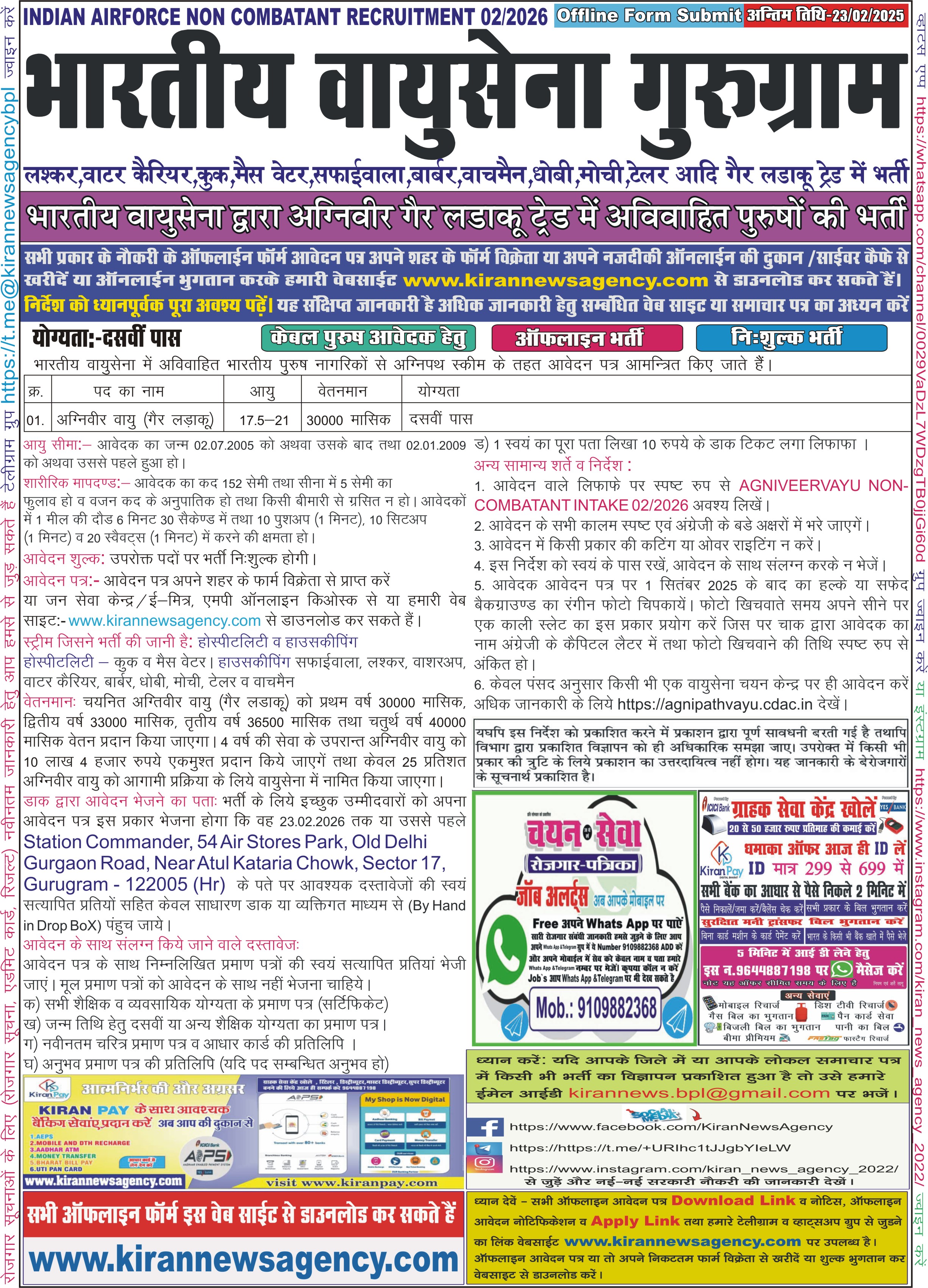 Recruitment :-Agniveer Vayu Non Combatant 02/2026
