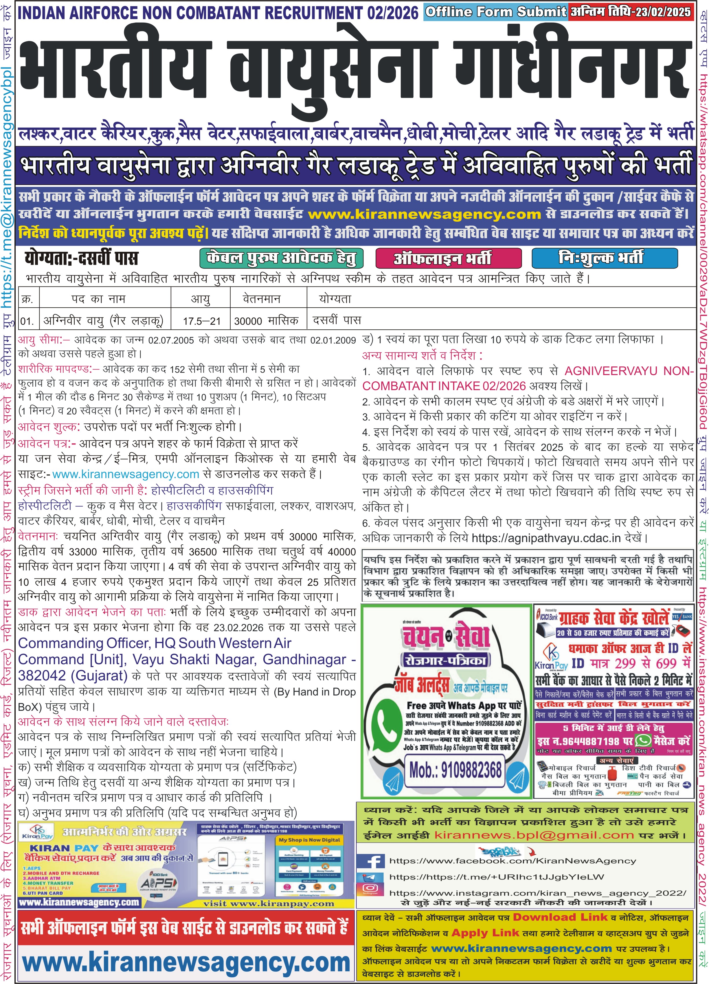 Recruitment :-Agniveer Vayu Non Combatant 02/2026