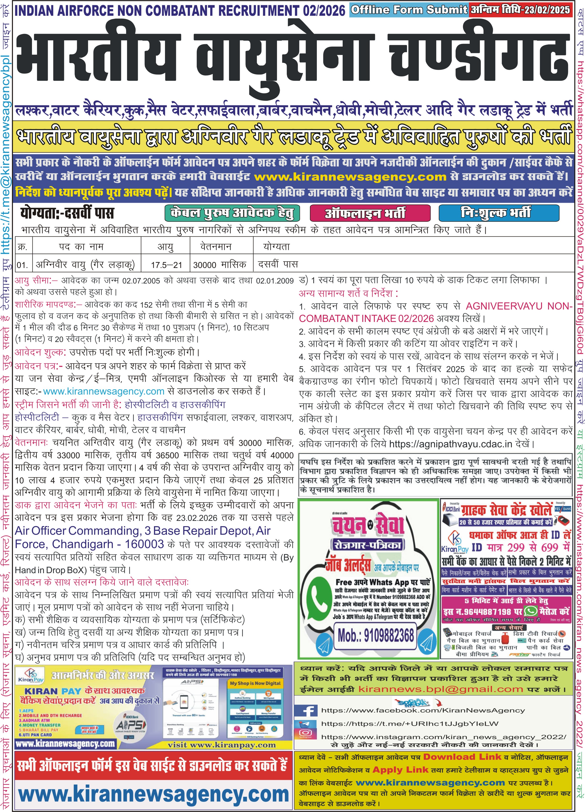 Recruitment :-Agniveer Vayu Non Combatant 02/2026