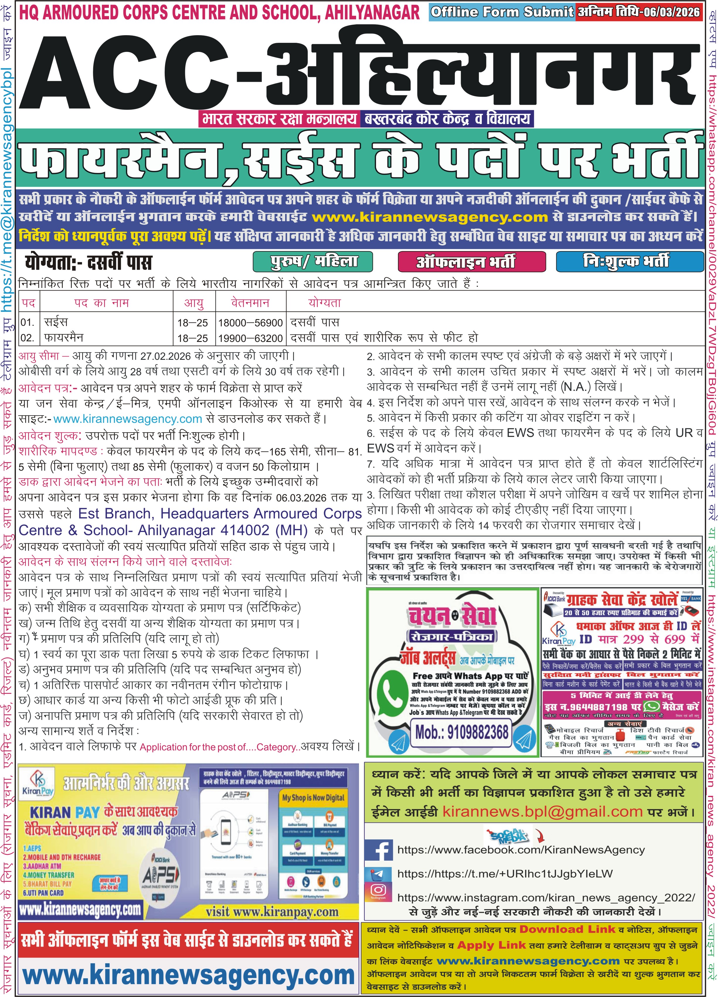 Static Workshop EME, Mhow   |    Air Force School, Gorakhpur   |    Armoured Corps Centre & School (ACC) Ahilya Nagar   |    Civil Court Hazaribagh   |    Delhi Transport Infrastructure Development Corpor   |    Static Workshop Devlali Nasik   |    AIIMS NORCET 10th Online Form 2026   |    Indian Army Agniveer Rally Recruitment    |    Army NCC Special Entry 124 Course   |    Punjab National Bank PNB Apprentices   |    RBI Non CSG Various Post    |    Computer Proficiency Certification Test (CPCT) Feb   |    NTA NEET UG 2026 Online Form   |    Indian Air Force Gwalior MP (Agniveer)   |    Indian Air Force Agra (Agniveer)   |    Indian Air Force Bareli (Agniveer)   |    Indian Air Force Barmer(Agniveer)   |    Indian Air Force Bikaner (Agniveer)   |    Indian Air Force Chandigarh (Agniveer)   |    Indian Air Force Gandhinagar (Agniveer)   |    Indian Air Force Gurugram (Agniveer)   |    Indian Air Force Jaipur (Agniveer)   |    Indian Air Force Jaisalmer (Agniveer)   |    Indian Air Force Jodhpur (Agniveer)   |    Indian Air Force Kanpur (Agniveer)   |    Indian Air Force Mumbai (Agniveer)   |    Indian Air Force New Delhi (Agniveer)   |    Indian Air Force Puna (Agniveer)   |    Armoured Corps Centre & School Ahilya Nagar [71 Ca   |    7010 EME Bn, Bathinda Cantt   |    7002 EME Bn, Ambala   |    Air Force School, Gwalior   |    Jila Satra Nyayalaya Gurugram   |    ECHS Prayagraj   |    District & Sessions Court, Jhajjar   |    District & Sessions Court, Narnaul   |    District & Sessions Court, Sirsa   |    District & Sessions Court, Sonipat   |    ECHS Agra   |    ECHS Bikaner   |    ECHS Dehradun   |    ECHS Hindon, Ghaziabad   |    ECHS Meerut   |