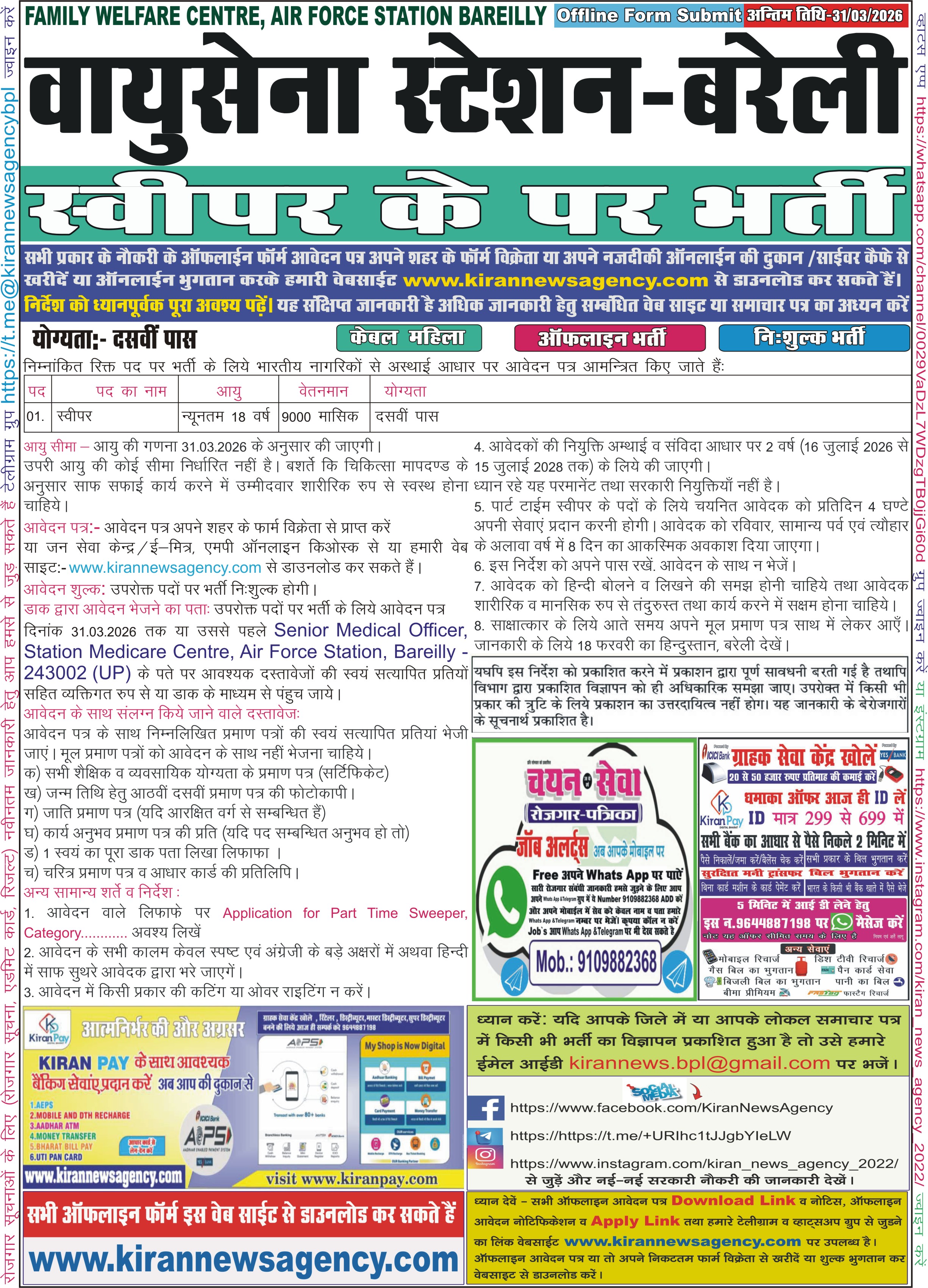 Air Force Station,Bareilly   |    District & Sessions Court, Lucknow   |    District & Sessions Court Palwal   |    Topchi ESM Canteen, Hoshiarpur   |    Delhi DSSSB AE, JE, ASO & Legal Assistant   |    Reserve Bank of India RBI Assistant    |    BTSC Dairy Field Officer / Technical Officer    |    Static Workshop EME, Mhow   |    Air Force School, Gorakhpur   |    Armoured Corps Centre & School (ACC) Ahilya Nagar   |    Civil Court Hazaribagh   |    Delhi Transport Infrastructure Development Corpor   |    Static Workshop Devlali Nasik   |    AIIMS NORCET 10th Online Form 2026   |    Indian Army Agniveer Rally Recruitment    |    Army NCC Special Entry 124 Course   |    Punjab National Bank PNB Apprentices   |    RBI Non CSG Various Post    |    Computer Proficiency Certification Test (CPCT) Feb   |    NTA NEET UG 2026 Online Form   |    Indian Air Force Gwalior MP (Agniveer)   |    Indian Air Force Agra (Agniveer)   |    Indian Air Force Bareli (Agniveer)   |    Indian Air Force Barmer(Agniveer)   |    Indian Air Force Bikaner (Agniveer)   |    Indian Air Force Chandigarh (Agniveer)   |    Indian Air Force Gandhinagar (Agniveer)   |    Indian Air Force Gurugram (Agniveer)   |    Indian Air Force Jaipur (Agniveer)   |    Indian Air Force Jaisalmer (Agniveer)   |    Indian Air Force Jodhpur (Agniveer)   |    Indian Air Force Kanpur (Agniveer)   |    Indian Air Force Mumbai (Agniveer)   |    Indian Air Force New Delhi (Agniveer)   |    Indian Air Force Puna (Agniveer)   |    Armoured Corps Centre & School Ahilya Nagar [71 Ca   |    7010 EME Bn, Bathinda Cantt   |    7002 EME Bn, Ambala   |    Air Force School, Gwalior   |