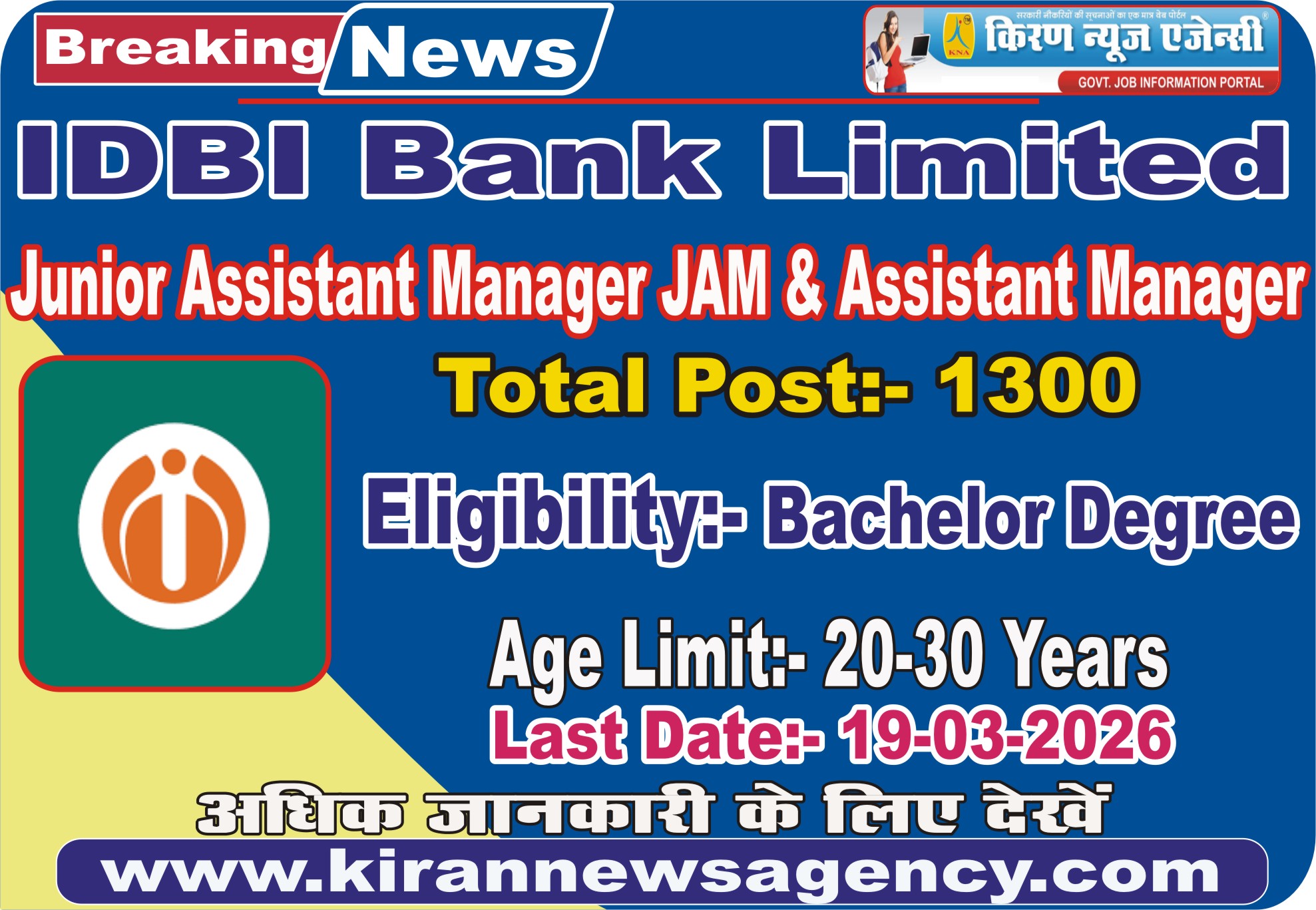 IDBI Bank JAM & Assistant Manager Vacancy 2026 : State Wise Vacancy Details |