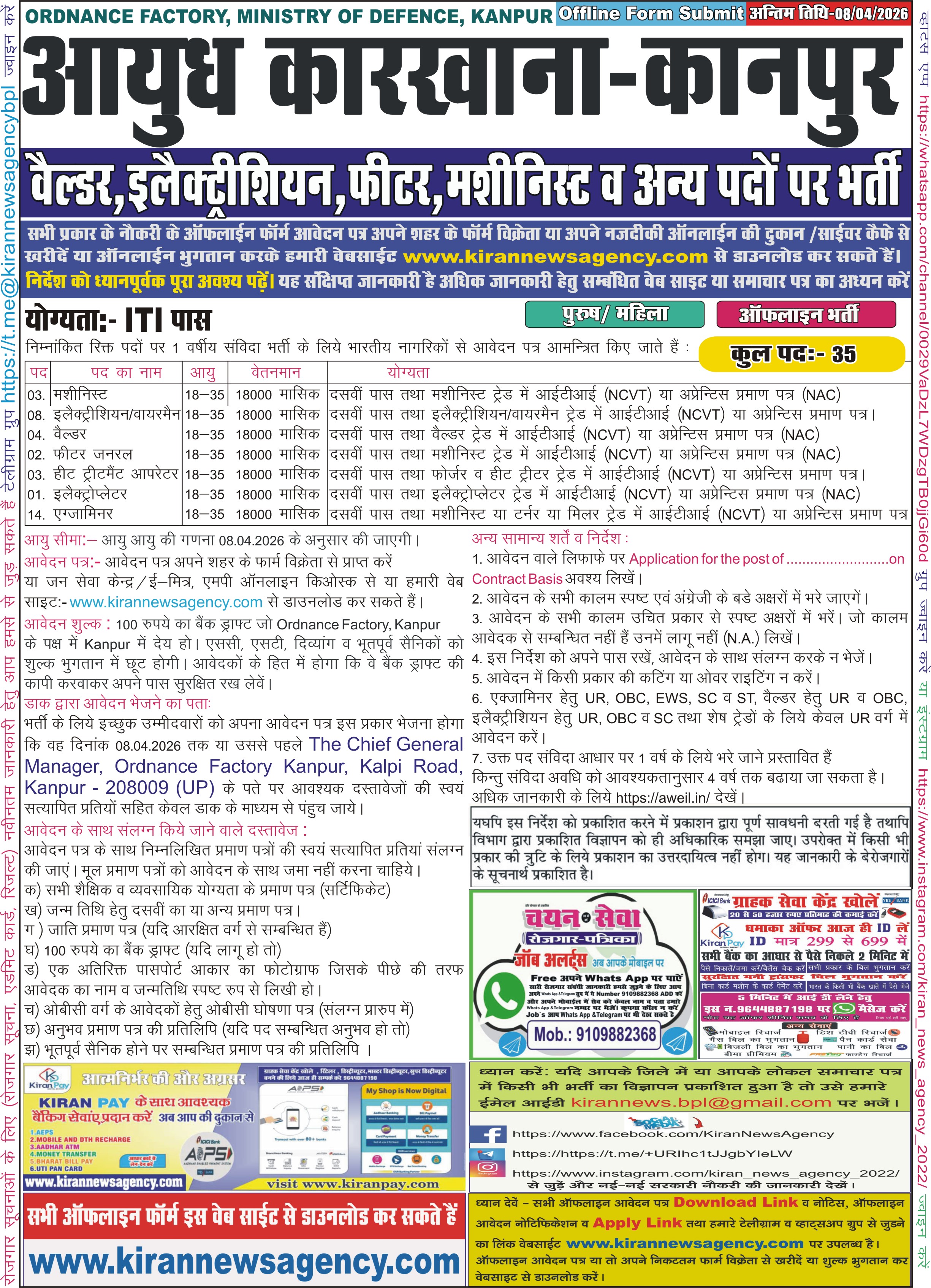 Chief Medical Officer Ayodhya   |    Judicial Academy Jharkhand, Ranchi   |    Kanpur Ordnance Factory   |    Ordnance Factory, Kanpur   |    KVS Class 1 Admissions Online Form 2026   |    MP ESB MP Pre Agriculture Test PAT Online Form 202   |    MPESB Van Rakshak, Jail Prahari Last Date Extended   |    Bank of Baroda Jhansi   |    District Basic Education Office, Unnao   |    District Basic Education Officer, Kanpur Dehat   |    ECHS Shimla   |    Sainik School, Amravati Nagar   |    Sainik School Tilaiya   |    MPESB MP Group-5 Staff Nurse , Paramedical and Oth   |    Central Bank of India Sagar   |    Chief Quality Assurance Establishment, Mumbai   |    Department of Post Office Mumbai   |    ECHS Bhuj   |    MP RTE Admission 2026-227   |    IDBI Bank JAM, Assistant Manager   |    Madhya Pradesh Land Records Management Society (MP   |    MPESB Van Rakshak, Jail Prahari Bharti   |    Air Force School Agra   |    Army Law College, Pune   |    Army Public School Tibri, Gurdaspur   |    Army College of Medical Sciences [ACMS], Delhi Can   |    BECIL Noida   |    District Basic Education Office, Kasganj   |    ECHS Ayodhya Cantt   |    ECHS Ferozepur   |    CSBC Bihar Police Constable Operator   |    South Indian Bank SIB Junior Officer   |    UPSC CPF Assistant Commandant CAPF   |    Air Force Station,Bareilly   |    District & Sessions Court, Lucknow   |    District & Sessions Court Palwal   |    Topchi ESM Canteen, Hoshiarpur   |    Delhi DSSSB AE, JE, ASO & Legal Assistant   |